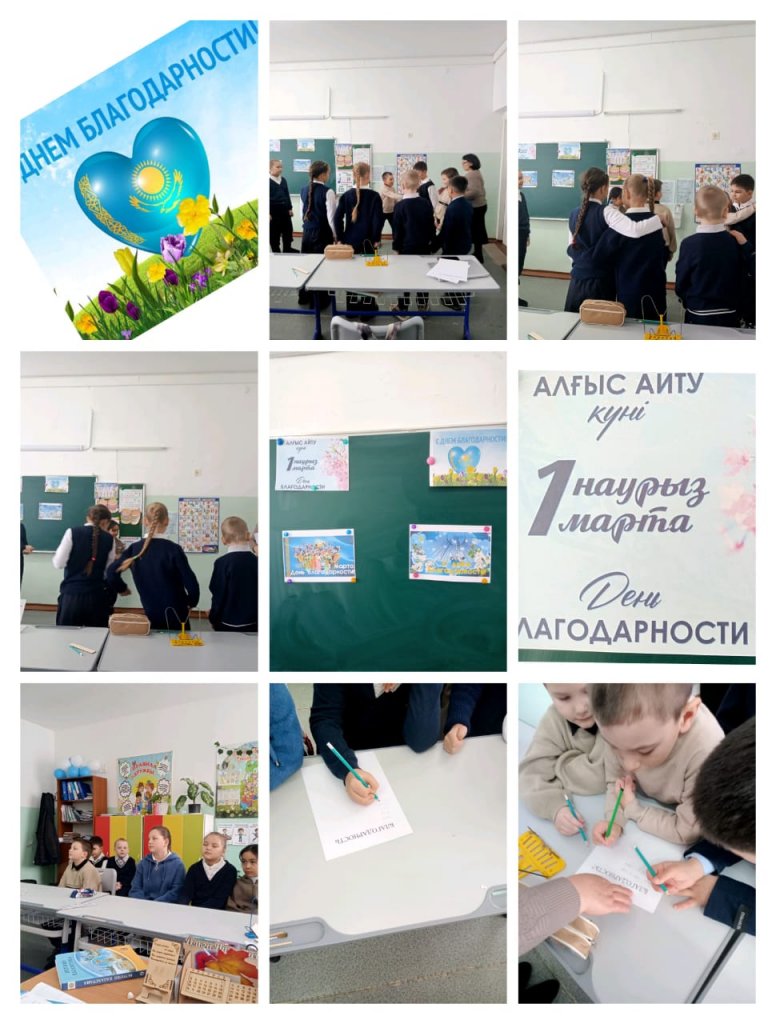 2.03 бастауыш сыныптарда Алғыс айту күніне арналған сынып сағаты өткізілді, ол Қазақстанда Алғыс айту күнінің пайда болу тарихы туралы әңгімеден басталды. Оқушылар мереке 1 наурызда атап өтілетінін және еліміздің барлық этностарының бірлігін, өзара құрметін және...