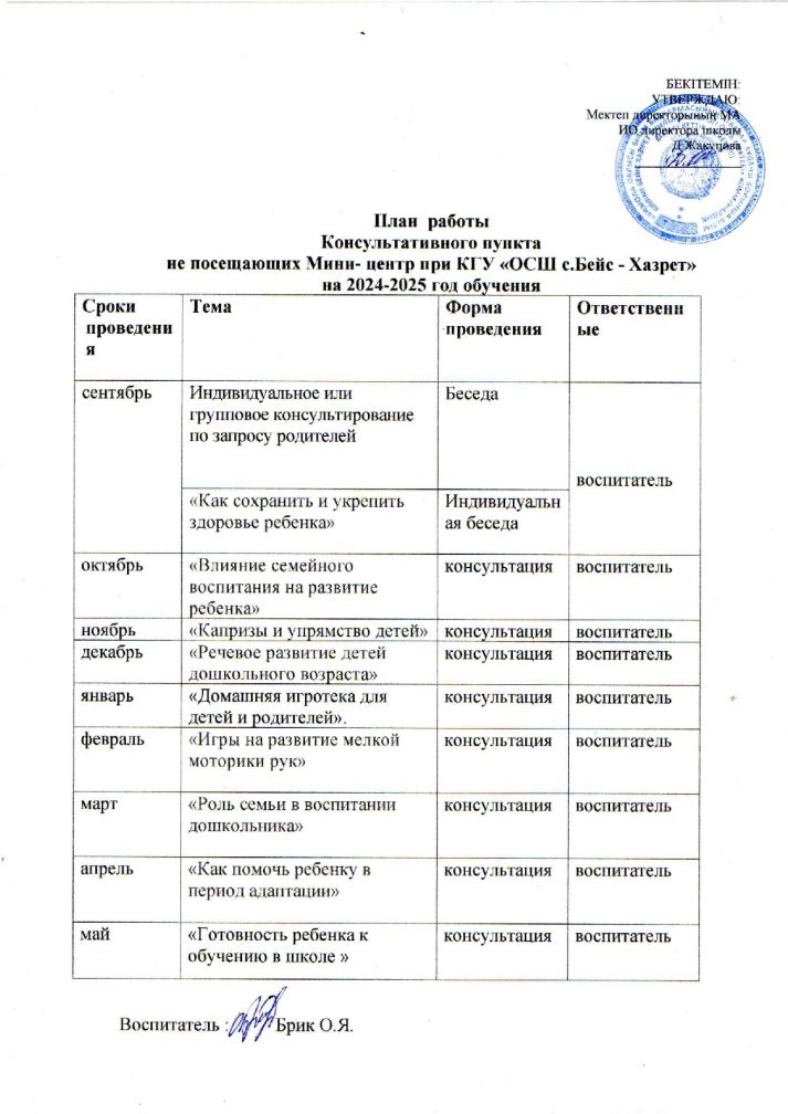 Консультациялық орталықтың жұмыс жоспары