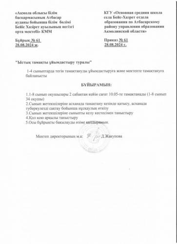 Ыстық тамақты ұйымдастыру туралы бұйрық