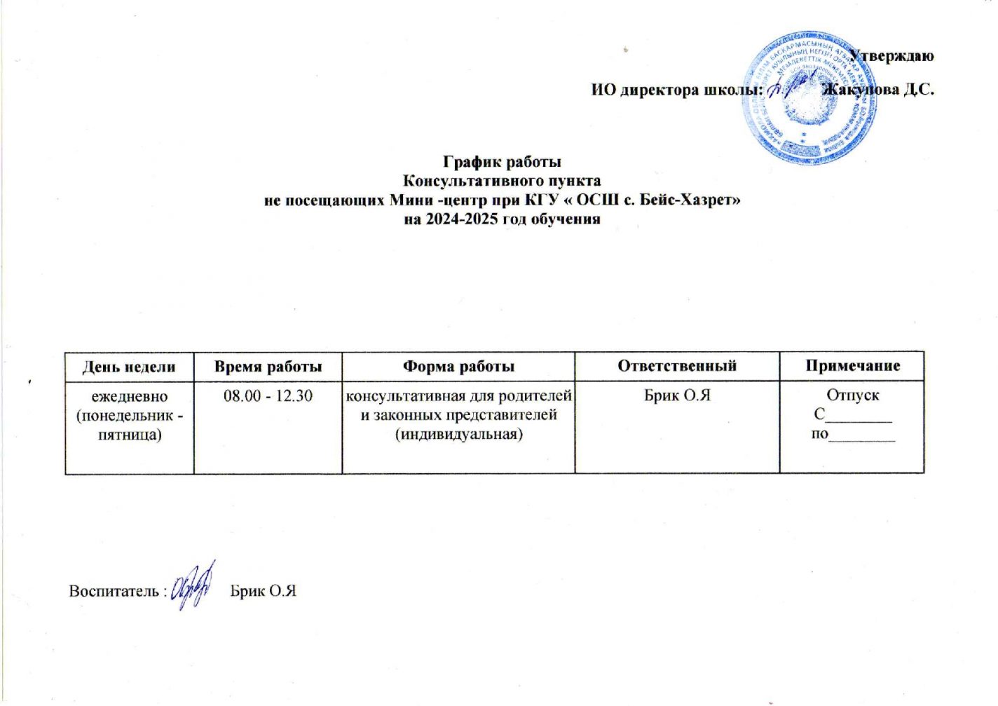 Кеңес беру жұмыс уақыты