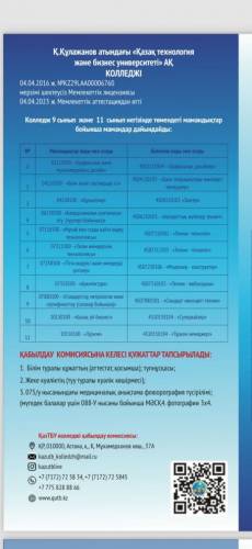 К Құлажанова атындағы Қазақ технология және бизнес университеті.