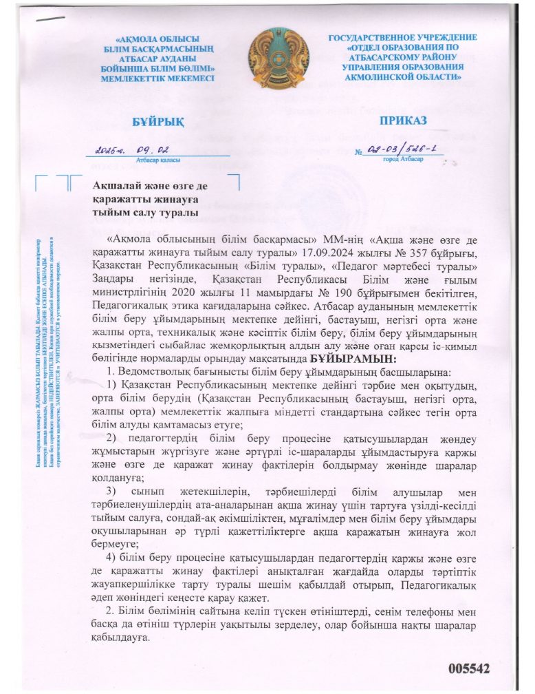 Ақша жинауға тыйым салу туралы бұйрық