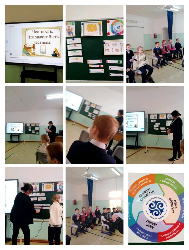 БЕЙС-ХАЗРЕТ ауылы орта мектеп КММ бастауыш сыныптарында сынып жетекшісі А.С. Омурзакова "Адалдық және шыншылдық "тақырыбында сынып сағатын өткізді.Оқушылар сұрақтарға белсенді жауап беріп,мақал-мәтелдер құрастырып, ойындарға қатысты.