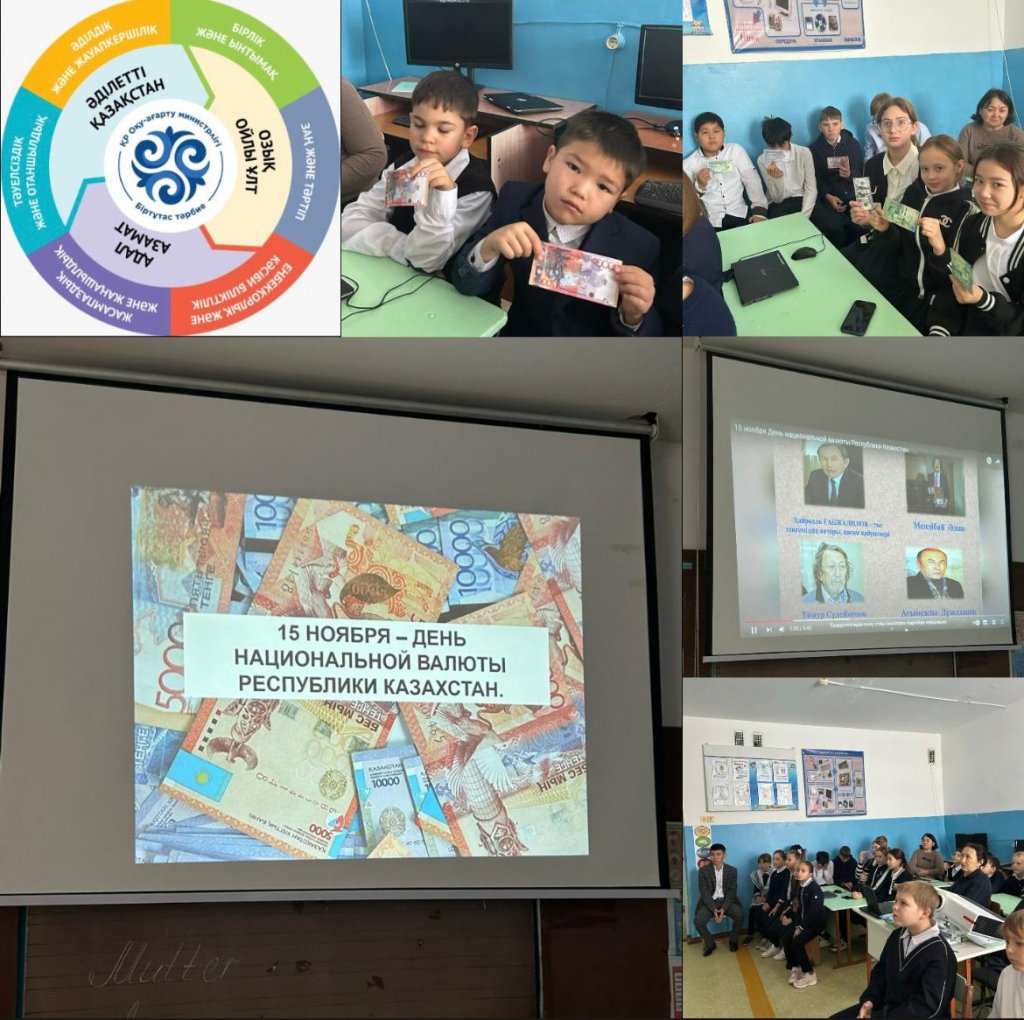 Бүгін, 11.11.2024 жылы 1-8 сыныптардың сынып жетекшілері ұлттық валюта күніне арналған жалпы сынып сағатын өткізді. Балаларға презентация, бейнеролик көрсетілді . Қорытындысында викторина өткізілді.