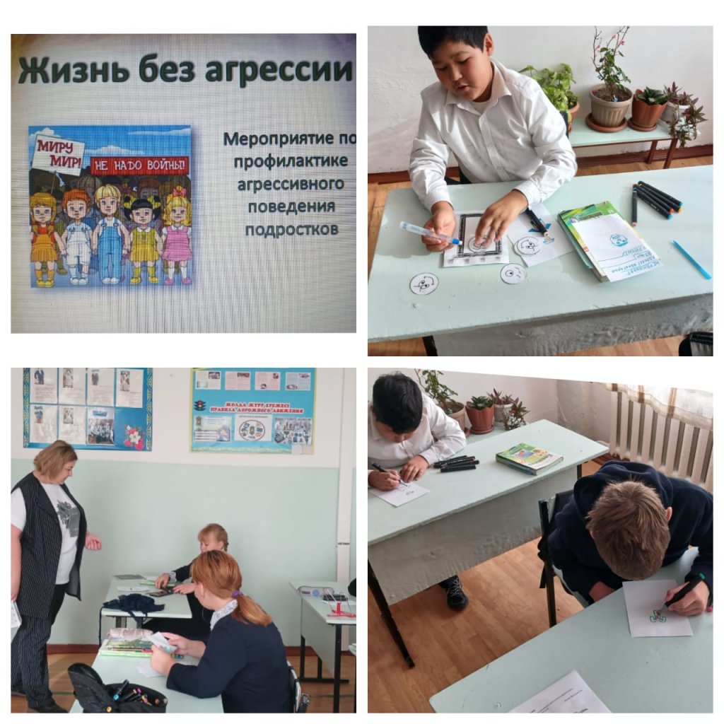 10 қазан күні Бейіс – Хазірет ауылындағы орта мектепте 7-сынып оқушыларымен «Агрессиясыз өмір», мақсаты: «Агрессия» ұғымымен таныстыру, қолайлы мінез-құлық дамыту» тақырыбында сынып сағаты өтті. ашу-ыза мен агрессияны, жағымсыз эмоциялардың...