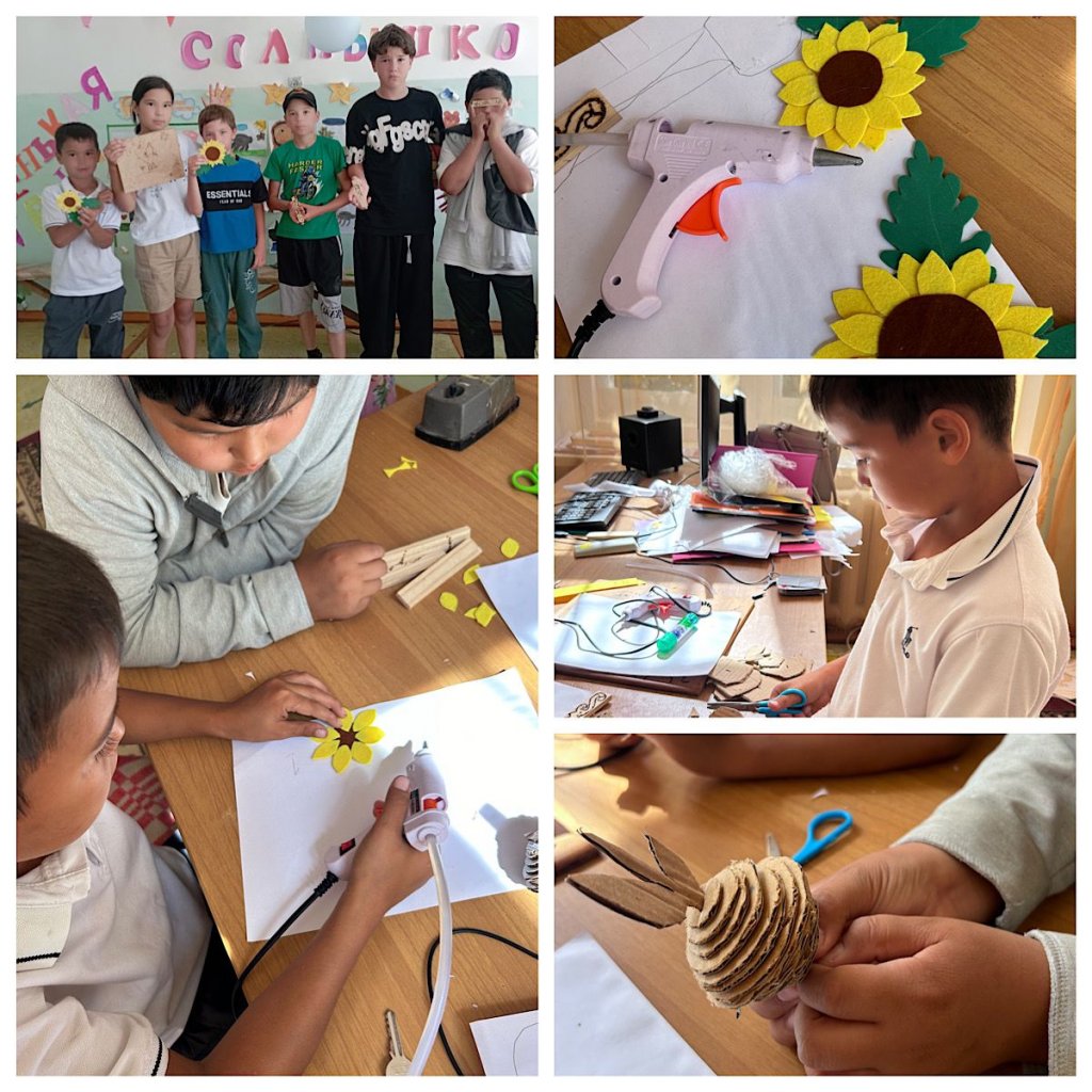 Жазғы лагерь мен аула клубы шығармашылық жұмысын жалғастырды. Бүгін балалар 3D картинасын жасаумен айналысты, балалар үлкен қуанышпен ағашты өртеп жіберді, киізден аппликация жасап, футбол мен баскетбол ойнады. Жетекшілері: Оспанова Н.К. және Радченко Е. В.