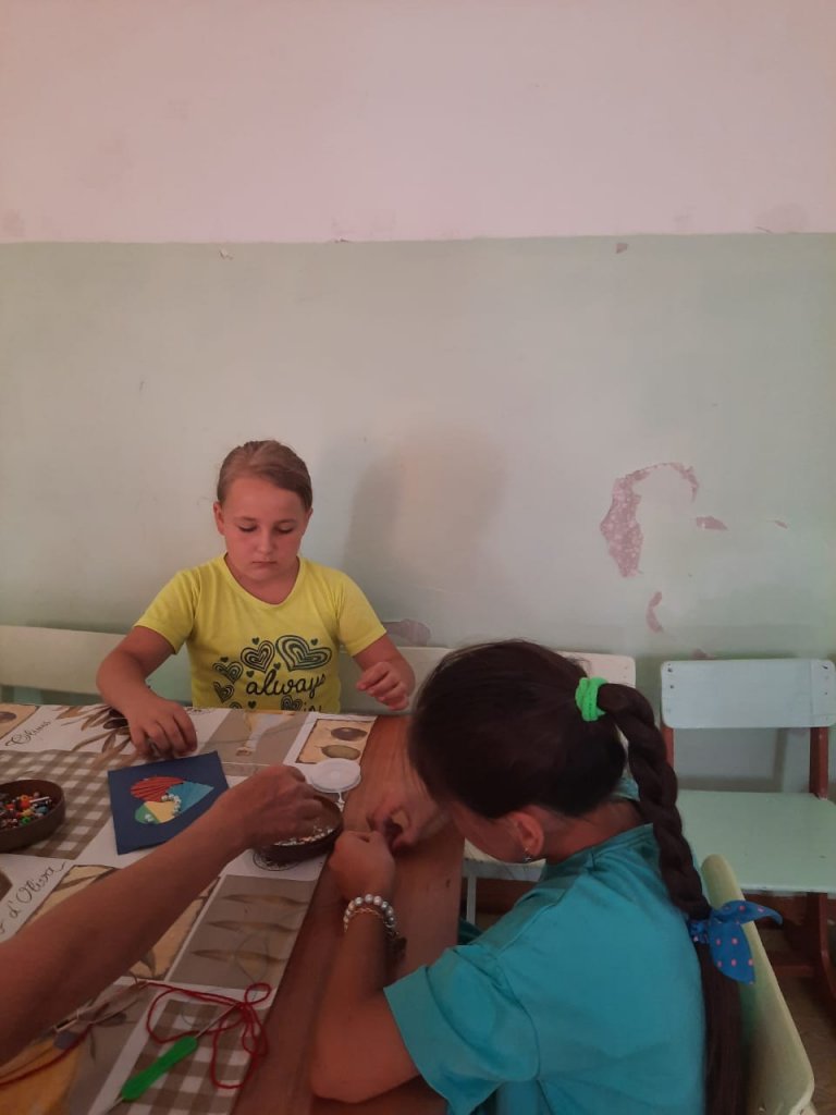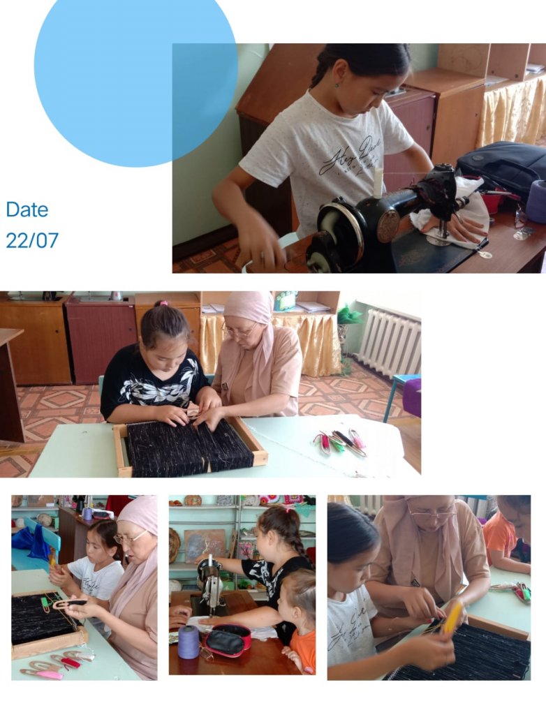 "Күншуақ" мектеп жанындағы лагері жұмысын жалғастырды. Таңертеңгі жаттығудан кейін балалар мектеп алаңында ойнады. Әрі қарай қыздар тігін машинасында тігуді үйреніп, кілем тоқудың халықтық қолөнерімен танысты. Ұлдар баскетбол ойнаумен айналысты.