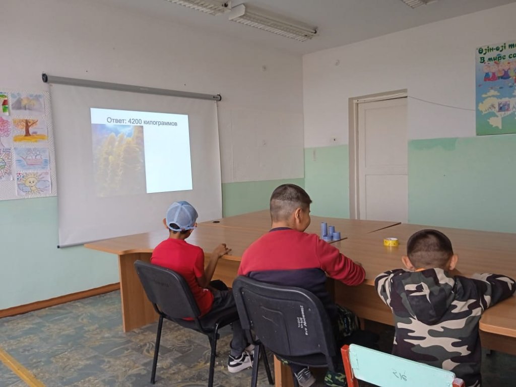 Бүгін математикадан жазғы мектепте, балалар теңізге байланысты "Су асты арифметикасы" есептерді шешті. Балалар есептерді шешіп қана қоймай, экология туралы да айтып, табиғатты қорғау керектігін айтты
