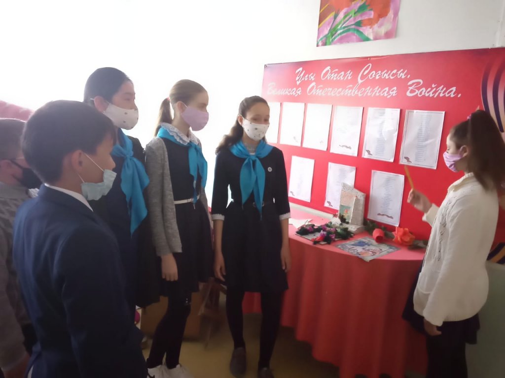 Ұлы Отан Соғысына 75 жыл толуына орай "Бейісхазірет негізгі мектебі" КММ-нде сынып сағаттары өтті. 6-7 сынып оқушыларының қатысуымен өтті. Мұғалім Хусаинова М.К. өзінің шәкірттерімен мұражайдағы Соғыс ардагерлеріне арналған бөлмеге саяхат жасап, олардың...