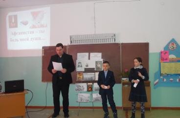 Бейсхазрет негізгі мектебінде Ауған соғысына арналған іс-шаралар өтті.Барлық сыныптарда сынып сағаттары өтті . Жалпы мектептен тыс іс - шараны тарих пәнінің мұғалімі Д .В. Радченко және 6-сынып оқушылары "Ауғанстан-Сен менің жанымдағы азап" өткізді....