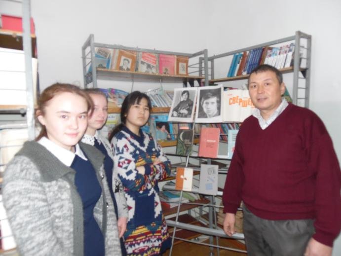 «Атбасар ауданы білім бөлімінің Бейісхазірет негізгі мектебі» КММ-нің мектеп кітапханашысы Бурашев А.С. оқушылармен бірге орыс жазушысы,композитор, актер, және музыкант В.С.Высоцкий-дің шығармашылығына арналған кеш...