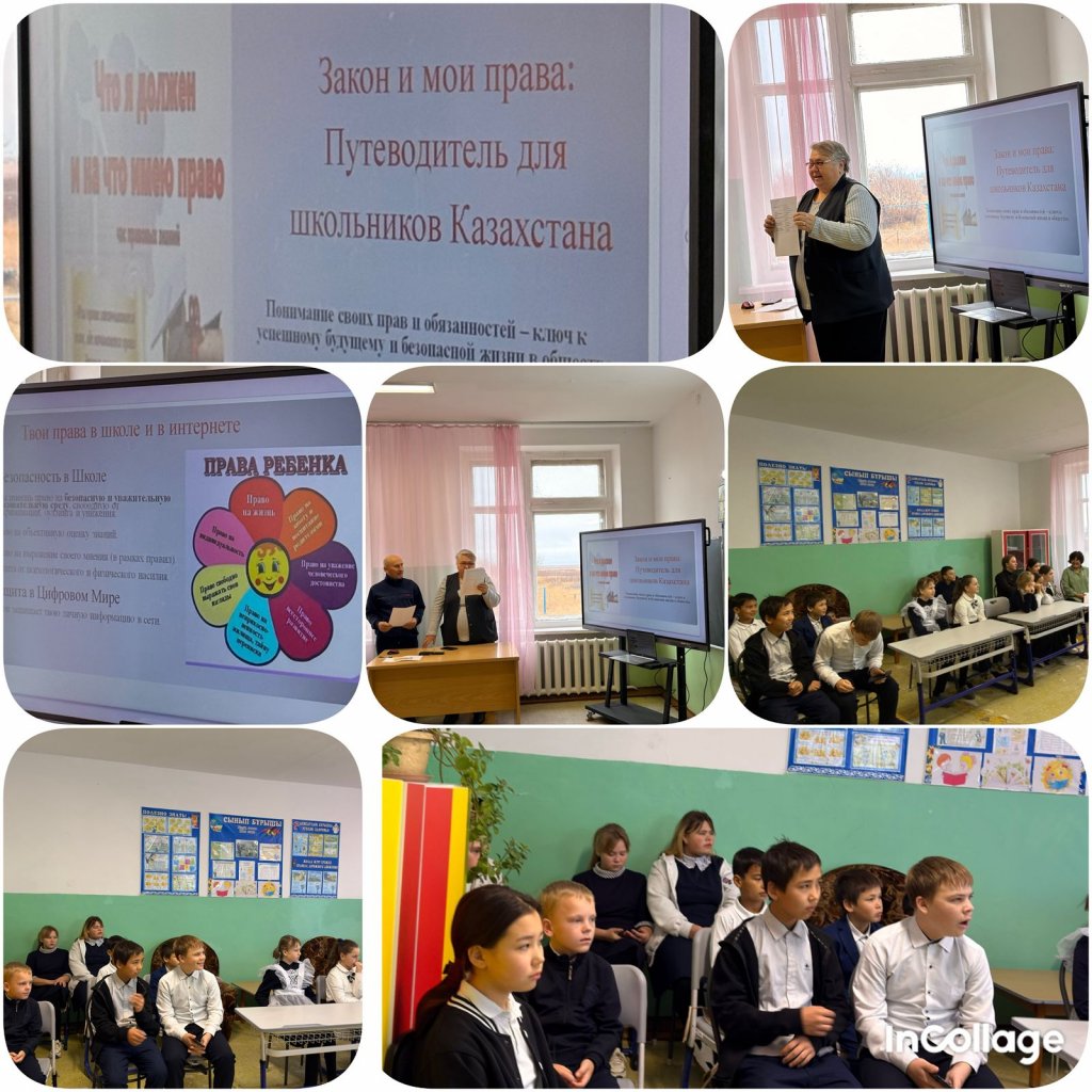 Бүгін мектебімізде «Заң және менің құқығым» тақырыбында бірыңғай сынып сағаты өткізілді. Сынып сағатының мақсаты — оқушылардың құқықтық мәдениетін қалыптастыру, өз құқықтары мен міндеттерін білуге, заңға құрметпен қарауға тәрбиелеу.