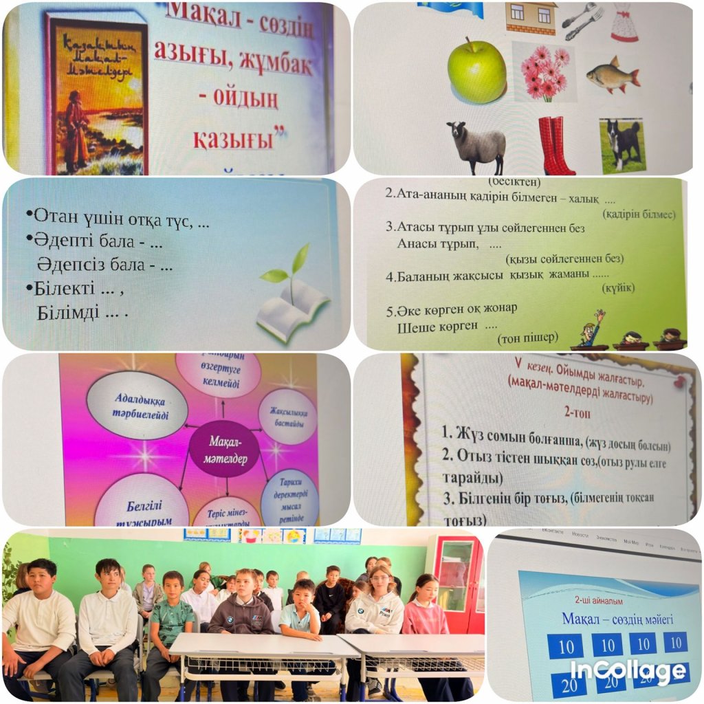 30 қазан 2025 жылы мектебімізде «Мақал – сөздің азығы, жұмбақ – ойдың қазығы» атты танымды сайыс өтті. Шараның мақсаты – оқушылардың тіл байлығын арттыру, ойлау қабілетін дамыту және ұлттық ауыз әдебиетіне деген қызығушылығын ояту болды.
