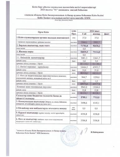 Білім беру ұйымы қаржылық қызметінің негізгі көрсеткіштері 2024 жылғы 1 қазандағы жағдай бойынша