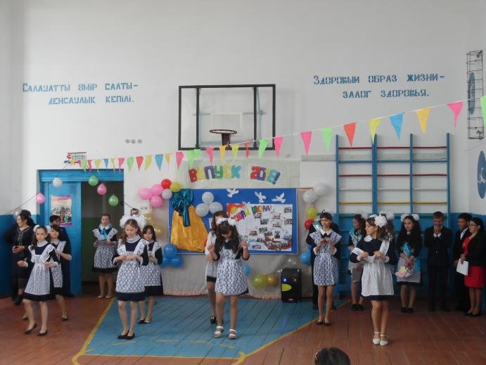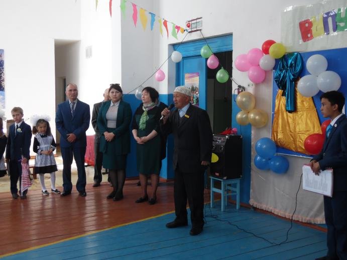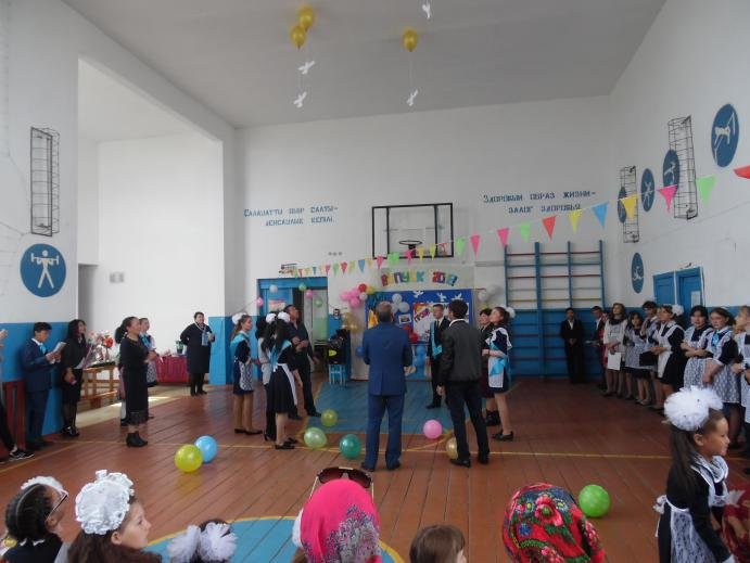 Мектеп директоры С.Д. Нұрпейісов барлық қатысушыларды оқу жылының аяқталуымен құттықтап, 2017-2018 оқу жылының қорытындысын шығарды, оқушылар мен ата-аналарға алғыс хаттар мен грамоталар табыс етті. Мектеп директоры өз сөзінде түлектерге оқудағы жетістіктері, аудандық және облыстық конкурстар мен іс-шараларға қатысқаны және жүлделі орындарға ие болғаны үшін алғысын білдірді. Шахматтан облыстық спартакиадада бірінші орын алған және республикада біздің облыстың атынан қатысатын түлек Жұмаш Адель ерекше атап өтті. Республикалық спартакиадаға сәттілік тілеп, біздің мектептен медаль табыстады. Сондай-ақ, 1 және 4 сынып оқушылары түлектерімізге өз өлеңдері мен әндерімен құттықтау сөз сөйледі. Жоғары сынып оқушылары түлектерге арналған флешмоб дайындады.