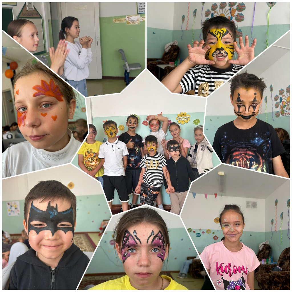 Кейін балалар көңілді билерге қатысты, өздерінің шығармашылық қабілеттерін көрсетіп, жақсы уақыт өткізді. Күннің ең есте қаларлық сәттерінің бірі — бетке сурет салу (фейс-арт) болды: біреуі жолбарысқа, біреуі ертегі кейіпкеріне, ал енді бірі түрлі-түсті бейнелер мен қиял-ғажайып өрнектерге айналды.🐯🧚