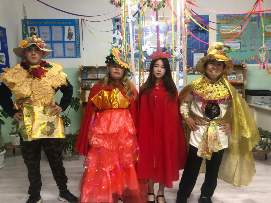 Кеш соңында сәнді подиумда оқушылар өздерінің күзгі образдарын паш етті.
