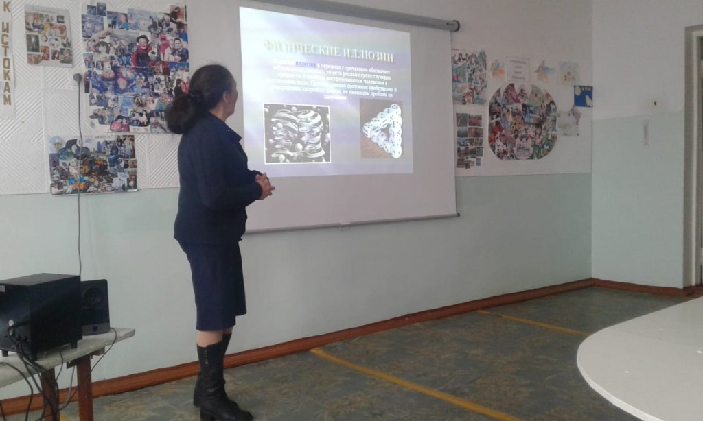 Іс-шараның атауы: "көрнекі алдау және иллюзия"физикалық викторинасы. Мұғалім : Оспанова Н.К. Мектеп: Бейсхазрет ОШ. Сынып: 5-9. Мақсаты: - адамның көрінетін және көрінетін заттар туралы санасын өзгертуге көмектесу, адамның санасында қабылдаудың жаңа деңгейлерін ашуға көмектесу - зейінділікке, нақты оқиғаларды көрінетіндерден ажырата білуге үйрету. Тапсырмалар: - балаларды өмірде әрдайым айқын нәрселер бола бермейді деген қорытындыға келтіру үшін практикалық іс-шараларды ұйымдастырыңыз - "көрнекі иллюзиялар" тақырыбы бойынша білімді кеңейтуге ықпал ету - оқушылардың өзіндік ойлау жұмысын ынталандыру - көз өлшегіштің дамуына, кеңістікте бағдарлануға, аналитикалық қабілеттерге, қиялға, қолдың ұсақ моторикасын дамытуға жағдай жасау - пайдалы әдеттердің қалыптасуына ықпал ету (көру қабілетін қорғау) Жабдықтар: презентация, тренингтер. Іс-шара барысы. Мұғалім: Қайырлы күн, біздің іс-шараның құрметті қонақтары. Біздің іс-шараны мен "заттарды көрсет"атты шағын тренингтен бастағым келеді. Көрермендерге, мысалы, сұқ саусақты көрсету ұсынылады, ал мұғалім бас бармақты көрсетеді және т.б. Слайд1. Бұл тапсырмалар бізге көбінесе шындық ретінде біз көрген нәрсені қабылдайтынымызды және естіген немесе естіген нәрсені емес екенімізді көрсетеді. Бүгін біз оптикалық иллюзия сияқты ұғым туралы аздап сөйлесетін боламыз.