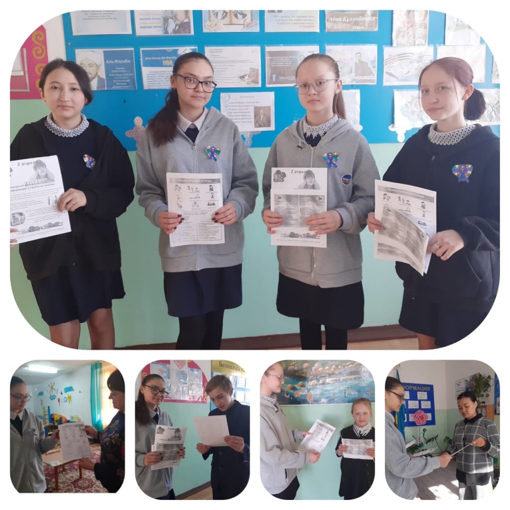 Мектеп психологы Кузьмина О.В. «Жақсылық жасауға асығыңыз!» тақырыбында 4 сынып оқушыларымен психологиялық сабақ өтті. Сабақтың мақсаты: Аутизм туралы түсінік беру, мүмкіндігі шектеулі жандарға адамгершілік қатынасқа тәрбиелеу.