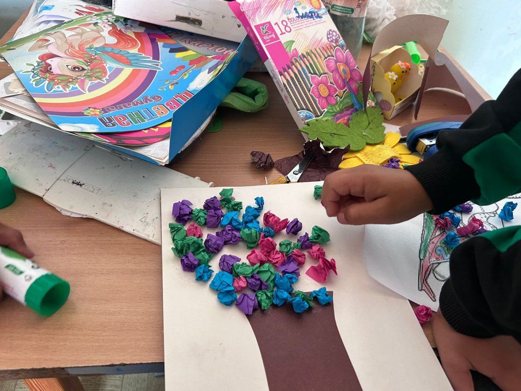 2024 жылдың 3 шілдесінде мектеп жанындағы лагерь, аула клубы және қызығушылық сабақтары бірлескен жұмысын жалғастырды. Егде жастағы балалар өрмекшілердің жіптерінен жасап, панельдер жасады, ал кішілері ағаштан әдемі аппликация жасады. Сондай-ақ балаларға спорт залында ойындар ұсынылды. Мұғалімдер Оспанова Н.К., Омурзакова А. С. және Радченко Е. В.