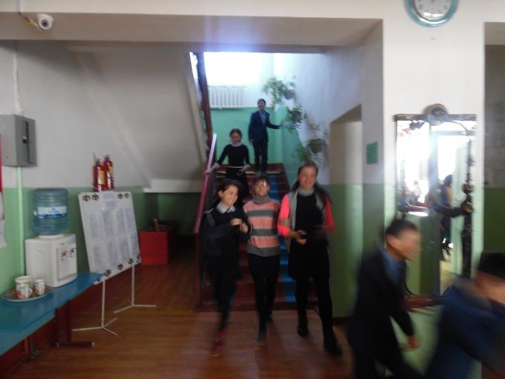 Сағат 10.00-де адамдарға өрт туралы автоматты ескерту жүйесі енгізілді. Мектеп завхозы Бурашев Амантай Серікұлы мектеп ғимаратына ток түсуін тоқтатты. Мұғалімдер мектеп ғимаратынан барлық эвакуациялық қақпаларды ашты.